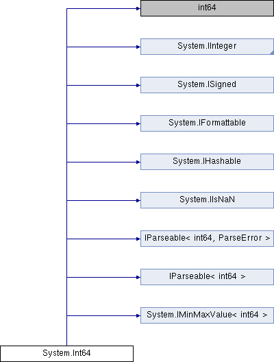 Properties inherited from System.IMinMaxValue< int64 > | |